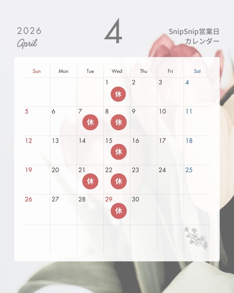 当店の4月のお休みはこちらになります。